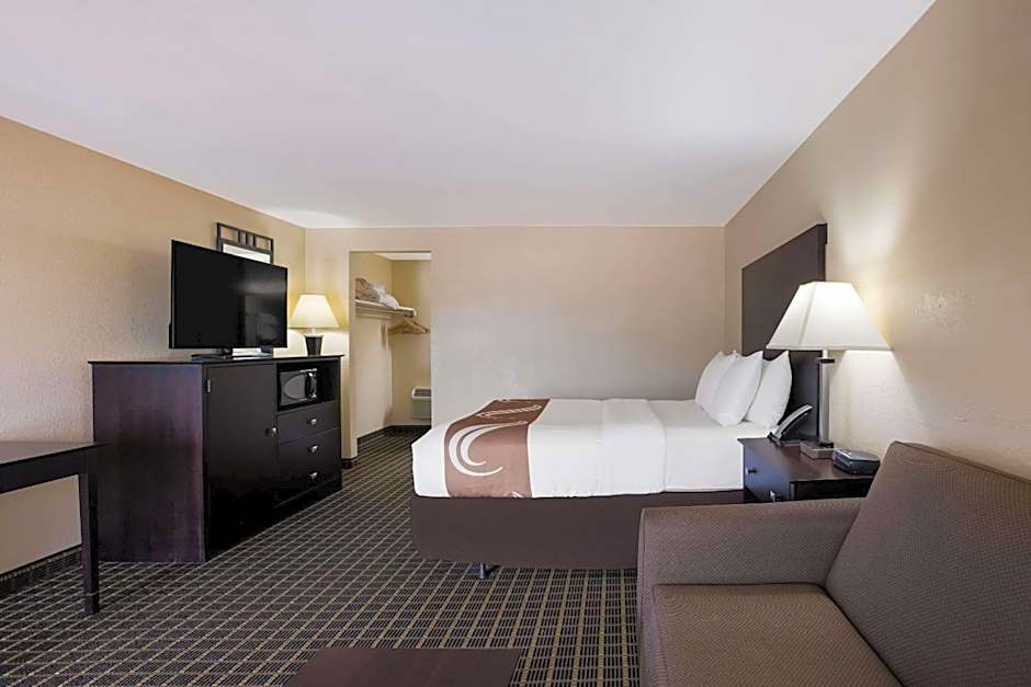 This offers a microwave, refrigerator, desk and seating area.